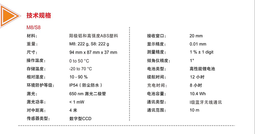 測(cè)量精度:±0.01 mm/m