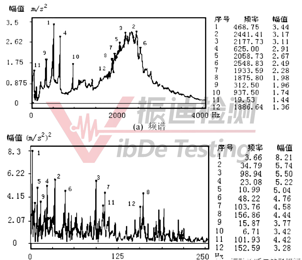 在齒輪箱中,翻滾軸承也是引起齒輪箱毛病的主要原因,軸承常見的的毛病便是內外環何翻滾體呈現點蝕和疲憊脫落。翻滾軸承內外環及翻滾體疲憊脫落和點蝕后,在其頻譜的中高頻區外環固有頻率鄰近呈現顯著的調制峰群,發生以外環固有頻率為載波頻率,以軸承經過頻率為調制頻率的固有頻率調制現象。因為翻滾軸承發生的振蕩在傳動箱中與齒輪振蕩比較能量較小,解調譜中調制頻率幅值較小般只呈現1階。