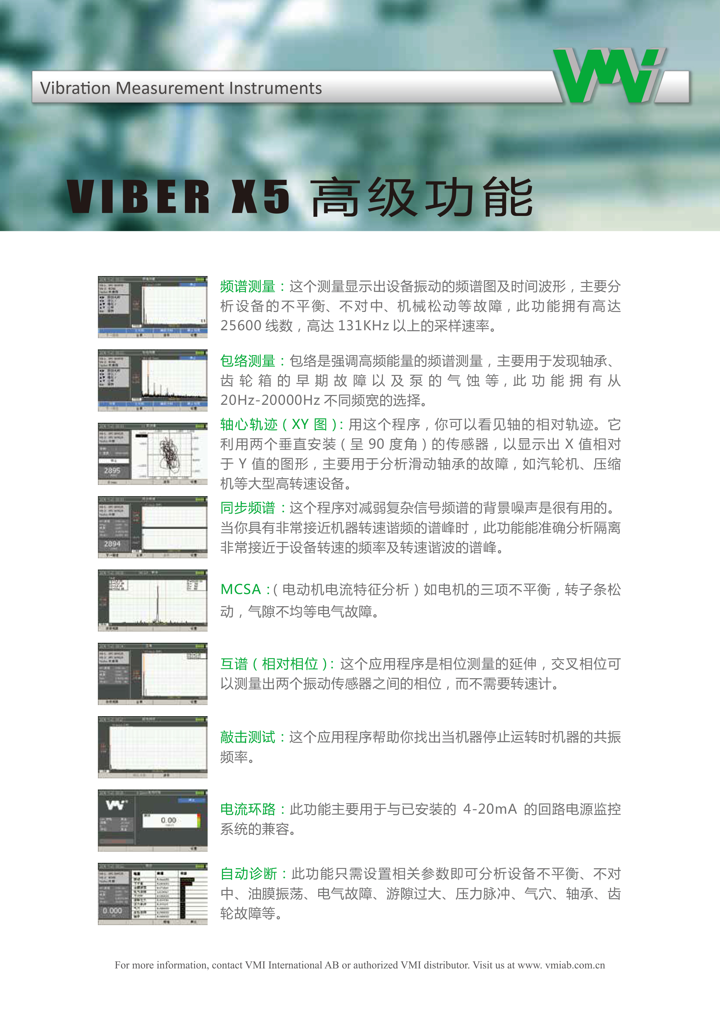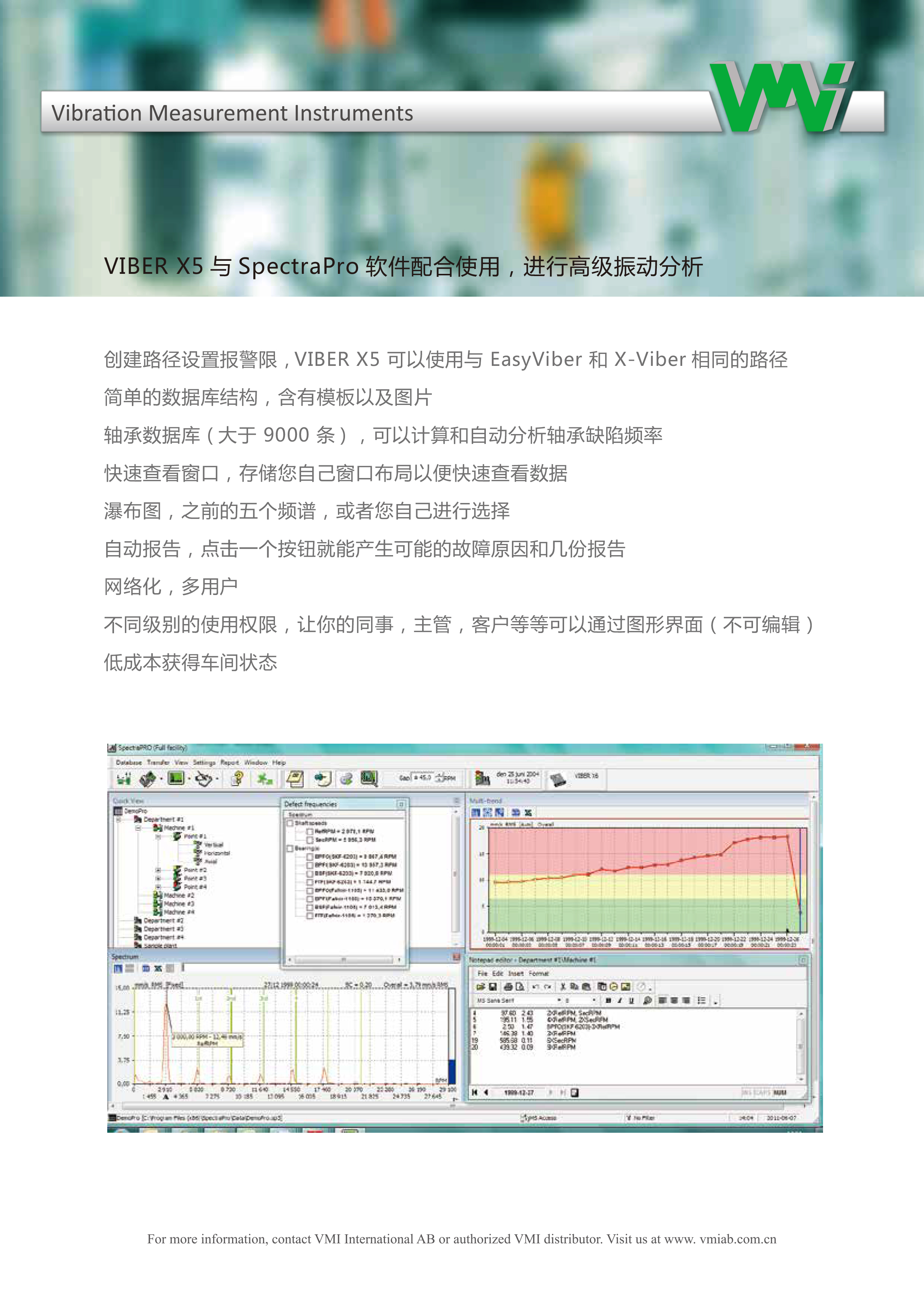 世界領先的智能設計與開發VMI 開發并制造振動測量儀器、機器狀態監測設備和軟件,同時考慮到用戶的需求與功能。我們的產品建立在 40 年的經驗基礎上開發,旨在實現所有必要的參數,以進行可靠的機器分析。